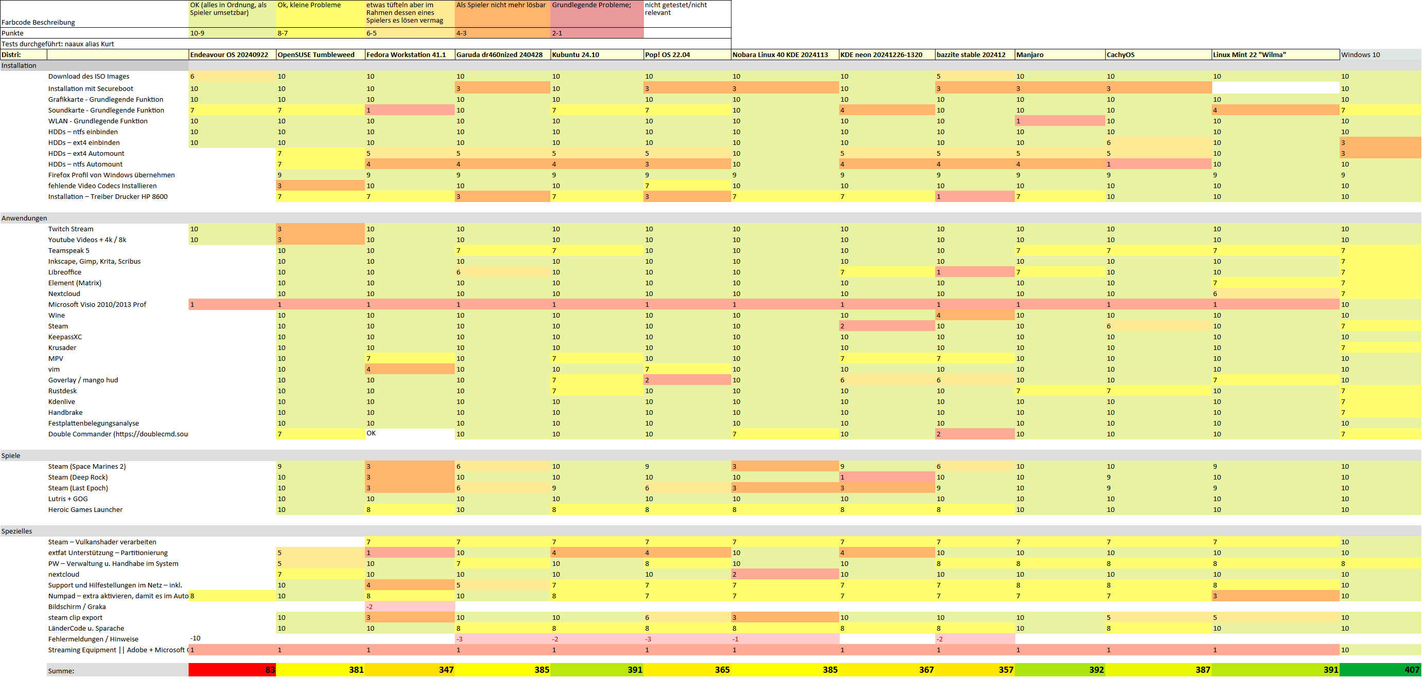 Seit Valve die Steamdeck auf den Markt gebracht hat, hat sich in dem Bereich viel getan. Mittlerweile funktionieren Spiele sehr gut unter Linux. Aber der PC wird auch für viele andere Dinge genutzt, wie Office, Drucken, Layouts erstellen, E-Mail und so weiter. Und genau in den Bereichen "usw" trennt sich die Spreu vom Weizen. Denn jede Linux Distribution hat so ihre Eigenheiten. Wenn man auf Photoshop oder Auto CAD nicht verzichten kann oder auch gerne Spiele wie League of Legends spielt, dann wird man um Windows nicht rum kommen. Auch Hardware wie das Elgato Streamdeck bietet keine Unterstützung für Linux.